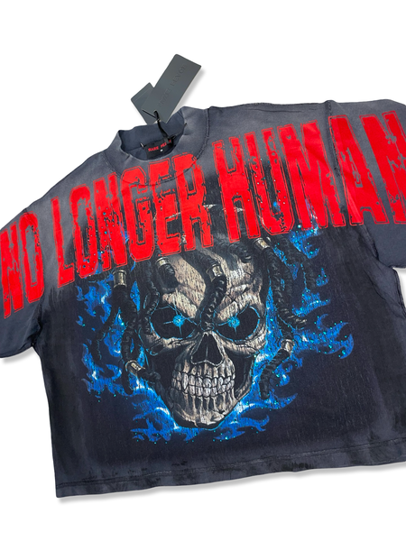 RARE PEACE NO LONGER HUMAN GRAPHIC TEE CROPPED In Washed Gray and Red with Blue Stones