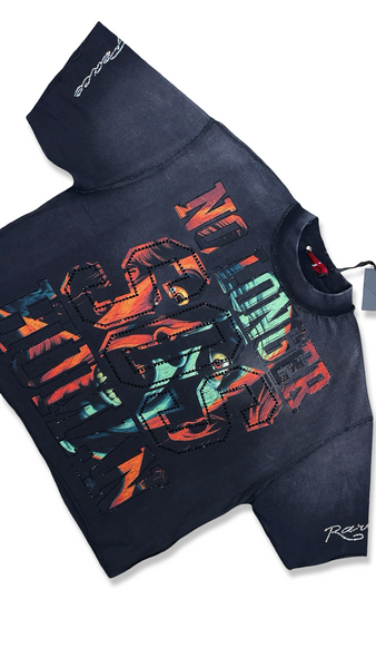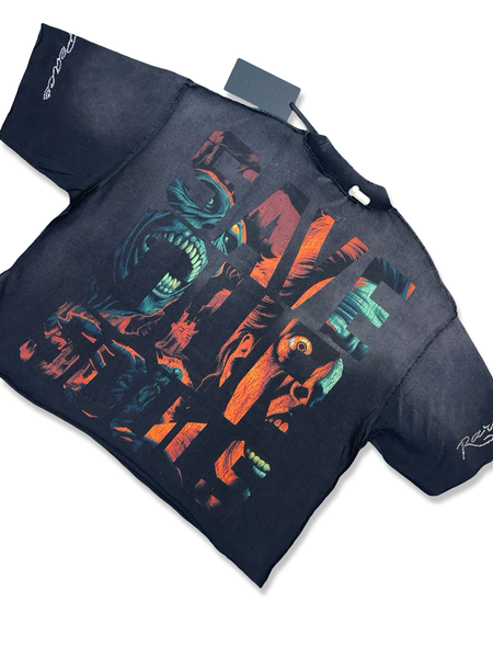 RARE PEACE NO LONGER HUMAN SOS GRAPHIC TEE WITH BLACK STONES CROPPED